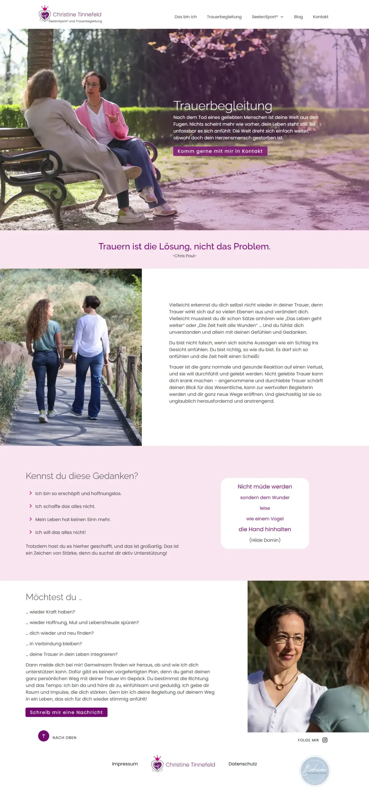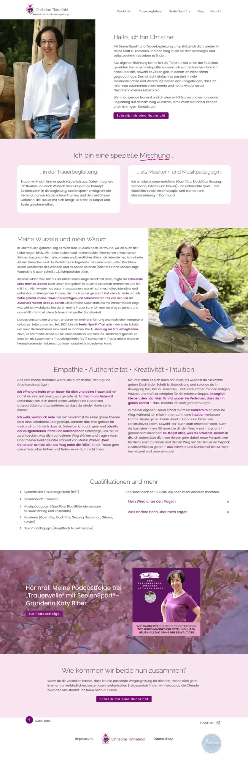 Für Christine Tinnefeld entwickelten wir eine Website für ihre Arbeit als Trauerbegleiterin und SeelenSport®-Trainerin.